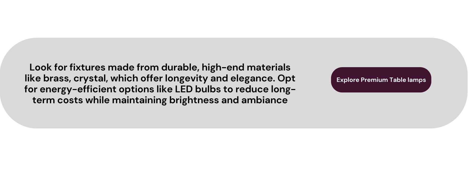 The lamp’s material and finish should complement the style of your room.