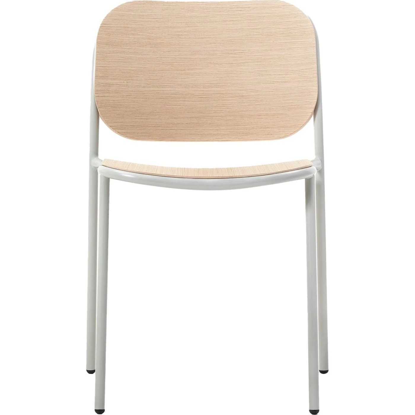 Characterized by clean lines and gentle curves, this chair by Studio Gabbertas boasts an essential silhouette that serves as an ideal complement for a modern desk. It showcases a cylindrical metal frame finished in RAL 9016 white, paired with a seat and backrest crafted from light oak and adorned with rounded corners. For alternative options including heat-treated oak, black aniline, or ash variants, please reach out to the Concierge for further assistance.