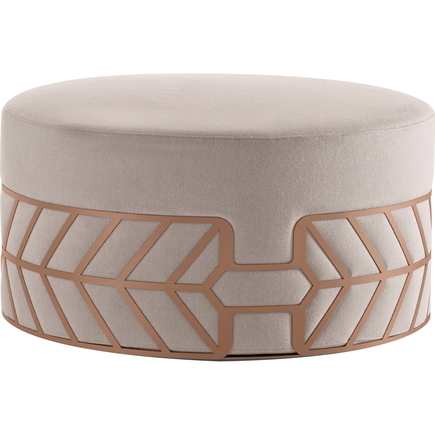 Featuring a gorgeous steel frame that encloses the spherical cushion like a belt around a priceless dress, this pouf by Elena Salmistraro is the epitome of the confluence of fashion and interior design. The beige upholstery fabric is complemented by the delicate golden pink lacquer on the frame. Polyester fabric padded with polyurethane foam.