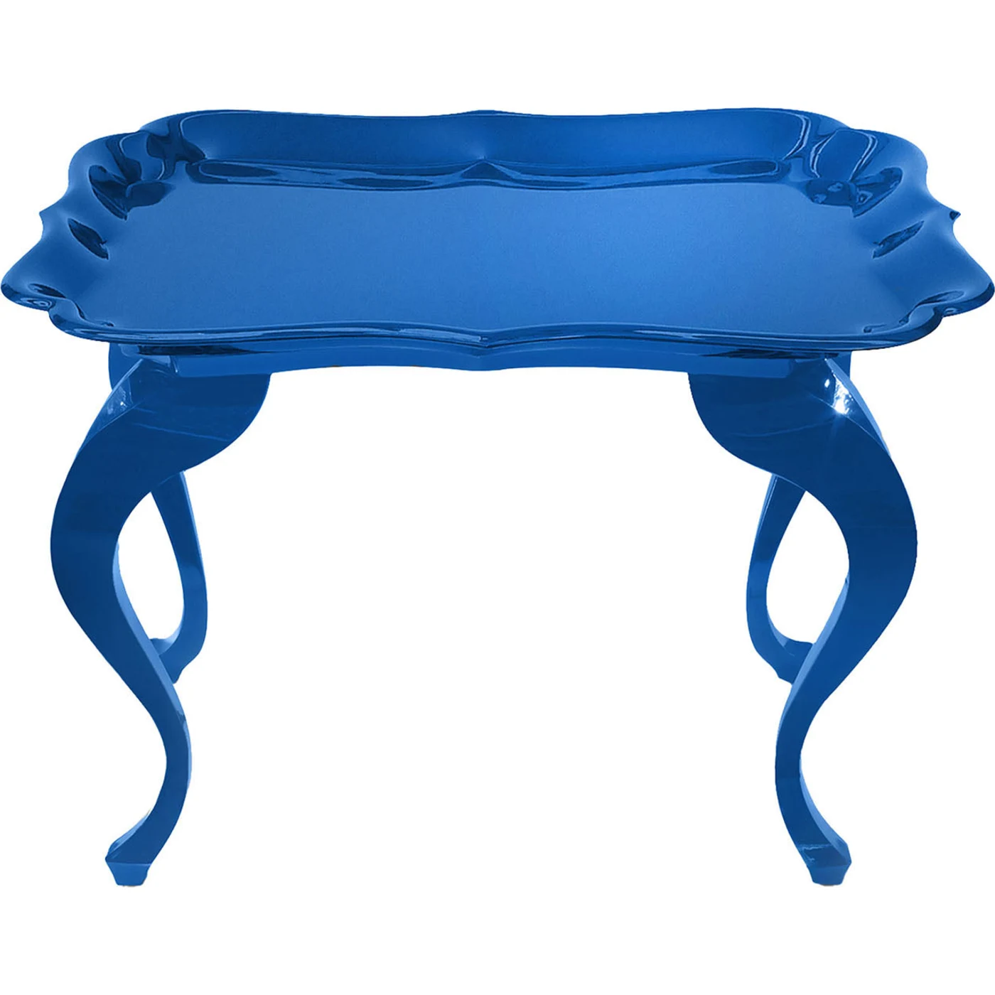 The coffee table, designed by Carlo Rampazzi, features a beautiful design that is complemented by the eye-catching blue tone and will create an exciting presence anywhere you place the piece. The base has a carved oak base and curved cabriole-style legs for a more classic feel, while the luxuriant polished blue lacquer on both is modern and chic; add a solid gloss white acrylic tray, which is removable, and the setting fully conveys a sense of luxury and sophistication.