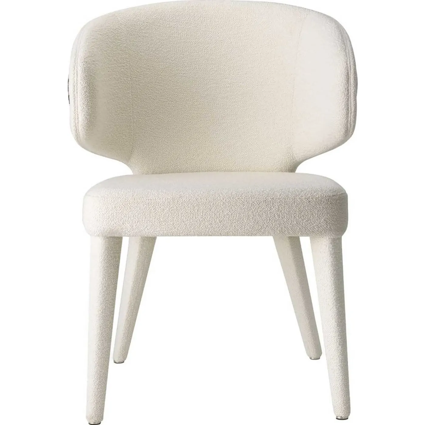 Wrapped in pristine white bouclé fabric, this chair exudes sophistication, adorned with horn details and chromed brass accents that elevate its aesthetic. The sleek design seamlessly extends to the chromed brass feet, contributing a touch of modern elegance and completing the ensemble with finesse. Please contact the Concierge for further information.