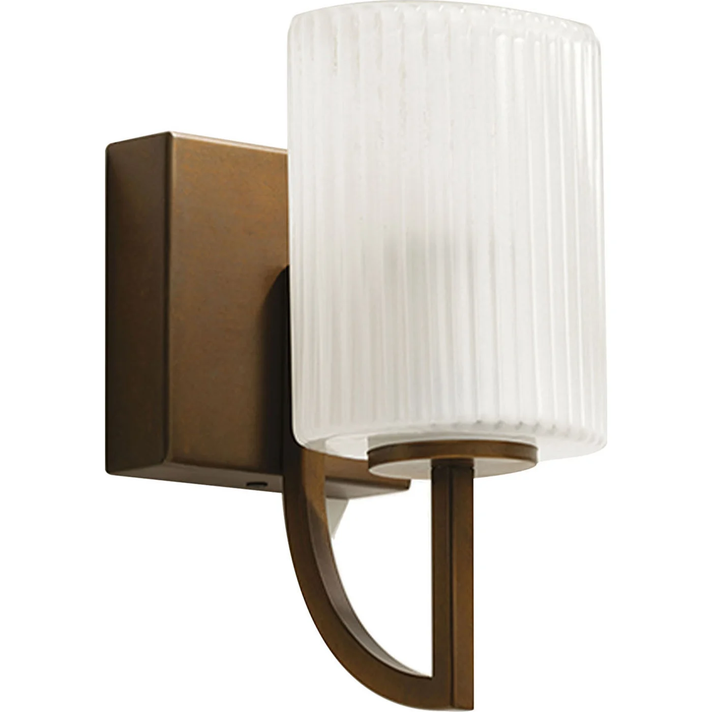 An illustration of the junction of solid and linear geometric shapes, softened by delicate glass diffusers with a vertical pattern that makes them seem silky, almost like a tapestry. An exquisite combination of light and substance is created when the fine art of glassmaking and artisan metalwork are combined. MM Lampadari created the design. Bulb is not included.