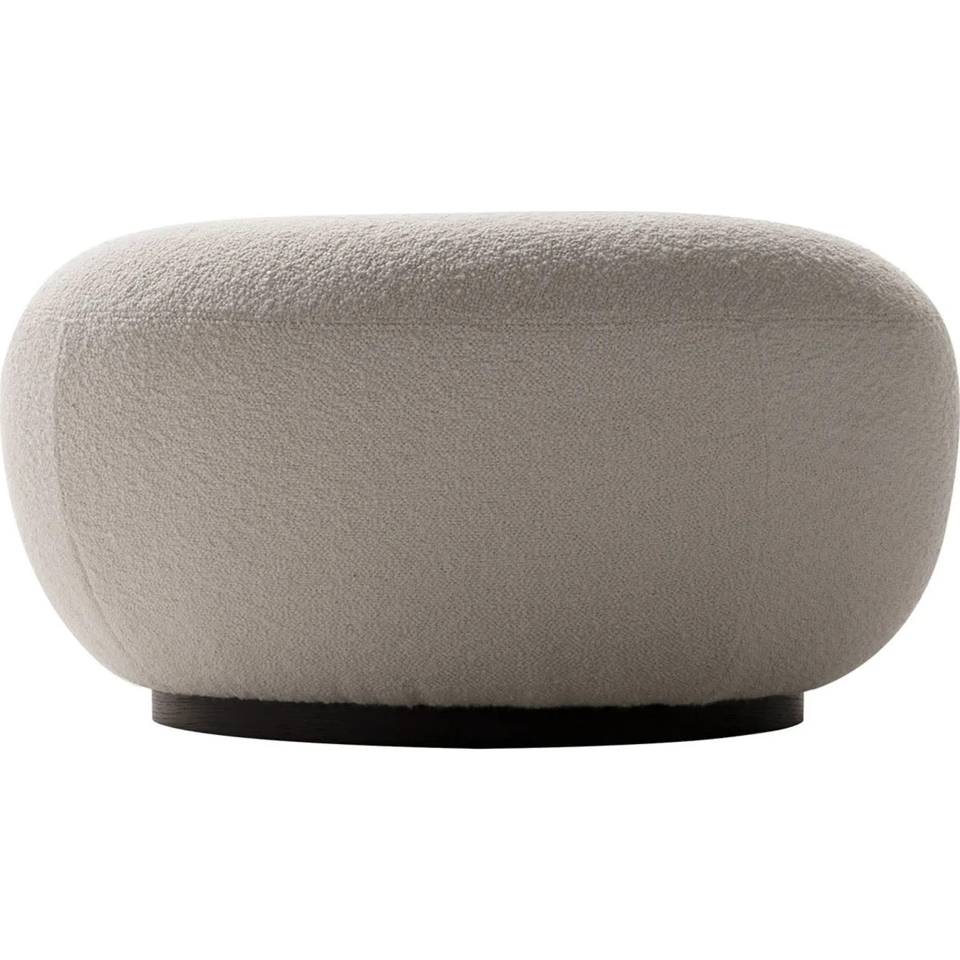 This pouf adds a touch of sophistication to modern and contemporary-style interiors with its delicate and plush appearance. Wrapped in a soft boucle fabric in white, it offers a pleasant tactile feel and ensures impeccable comfort with its rich stuffing. Ideal as a footrest for relaxing after a long workday, the design is completed with a sturdy base crafted from gray-stained ash.