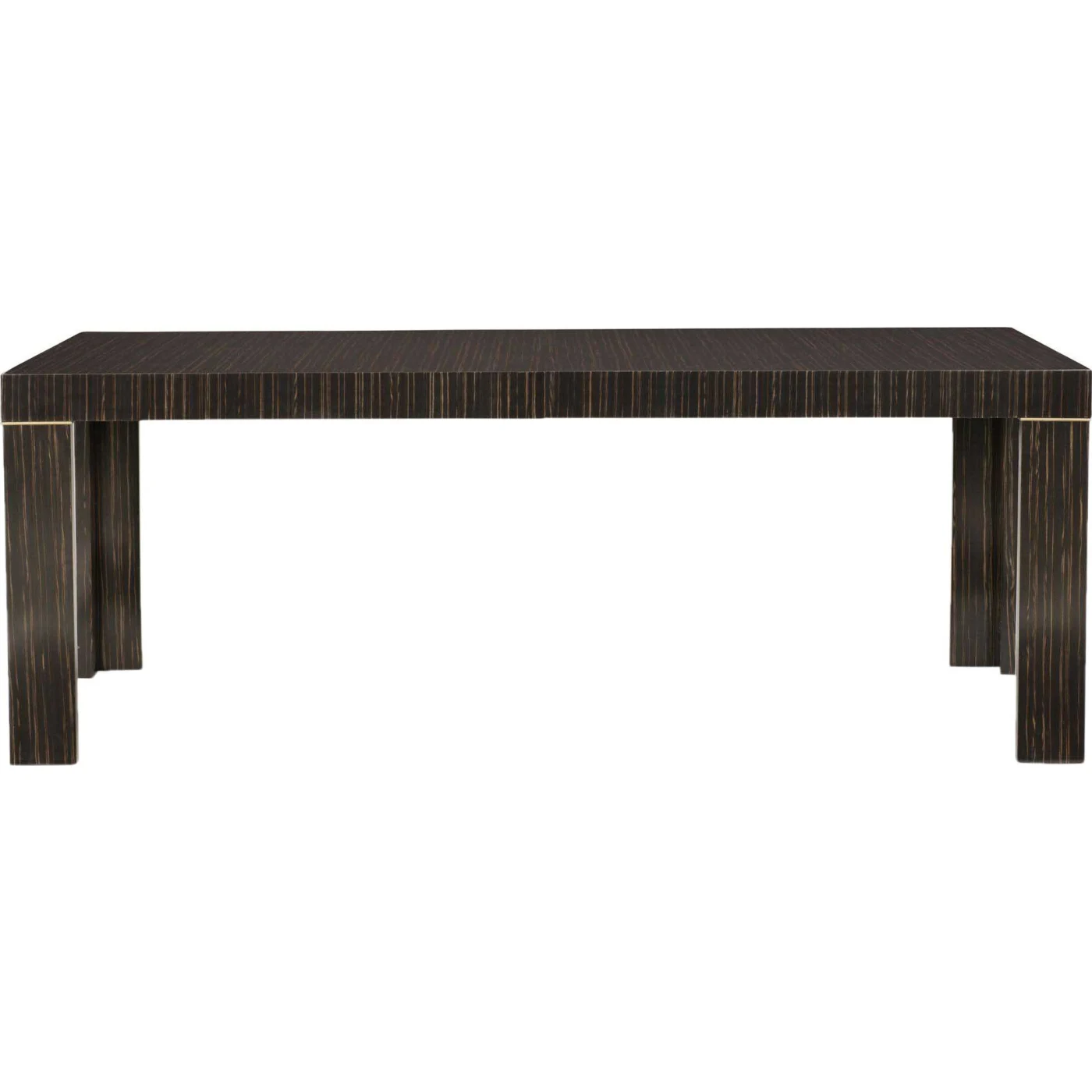 Enhance every meal with an exceptional dining experience by incorporating this stunning table into your decor. Its clean, simple lines evoke the classic form of a Parson table, updated with a fresh blend of materials. Engineered ebony, finished in Striated Ebony and trimmed with Lucent Bronze Metallic paint, adds bold character to the tabletop and legs while maintaining a streamlined silhouette. Embodying everyday elegance, this 203.2 cm dining table is perfect for entertaining and extends to 260 cm with the addition of a 56 cm leaf, ensuring ample space for holidays and gatherings.