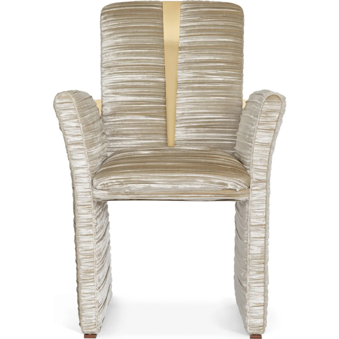 The Estelle Dining Chair is a modern chair that features a rectangular design and comes in a sleek finish. The chair has polished brass details and a ruched velvet cream seat that is easy to wipe clean. The seat is upholstered with soft grey fabric that is comfortable and breathable. The chair is lightweight and easily stores away when not in use. This chair brings a statement design to any dining room.