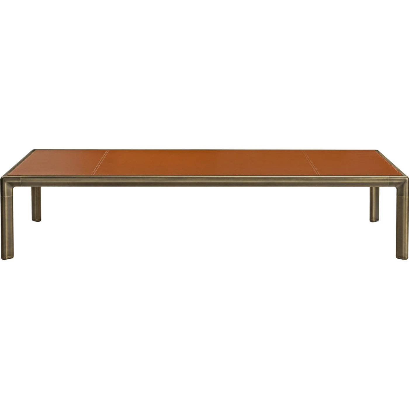 The Frame Coffee Table combines elegance and functionality with its blend of aluminum, wood, burnished brass, and leather top. Its modern design features clean, simple lines that make it a versatile addition to any contemporary living area or lounge room, enhancing both style and practicality effortlessly.