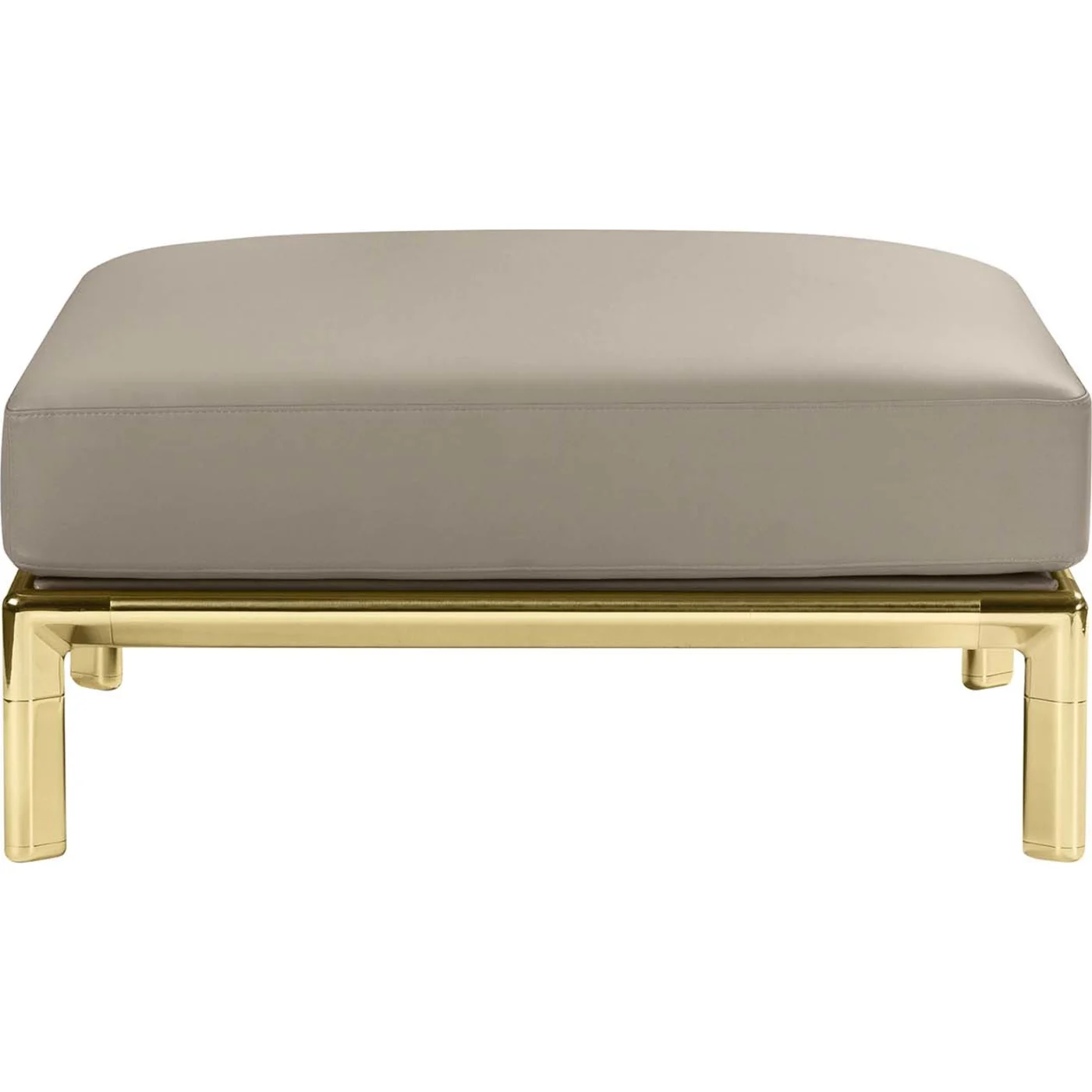 Low ottoman rests on legs made of polished or satin brass with square shape and features a fabric-coloured seat. It belongs to the new Frame collection, distinguished by minimalist lines, compact styles, and sturdy structures. The ottoman can stand alone or be combined with the collection's coordinated sofas, armchairs, bookshelves, cabinets, as well as dining and coffee tables. Contract and commercial certifications are available upon request. For the US market, please contact the Concierge for CAL TB 117 certified fabrics.