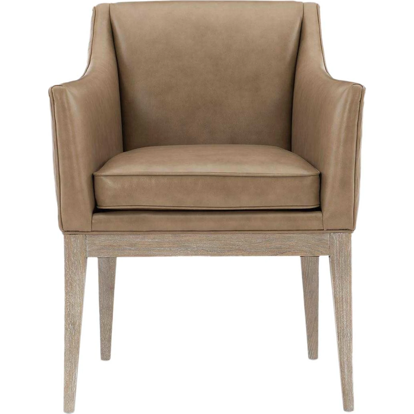 Dining reaches new heights of effortless elegance with this captivating dining chair. Ideal alongside a statement dining table, its classic profile is fully upholstered and rests gracefully on tapered legs finished in an easy going Ash Driftwood hue. Place it at the head and foot of the table for a touch of casual modern style, or make it a seat for everyone to enjoy, ensuring no one vies for its coveted position. Plush cushioning guarantees leisurely dining, while the chair's charming countenance ensures it's a feast for the eyes.