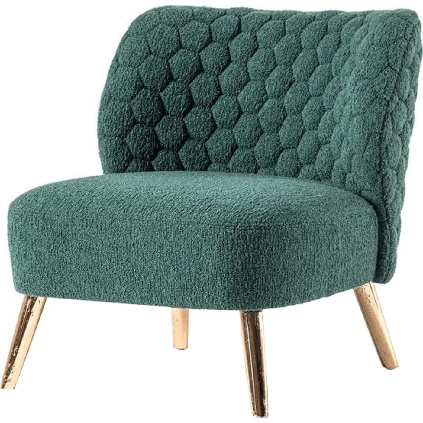 The Marilou armchair offers an enveloping and comfortable design, featuring upholstery exclusively in selected textured fabrics. Its backside is adorned with hexagonal quilting embroidery, adding a touch of elegance. The bronze metal legs are crafted using the ancient sand casting technique, imparting an artistic and unique character to the armchair.
