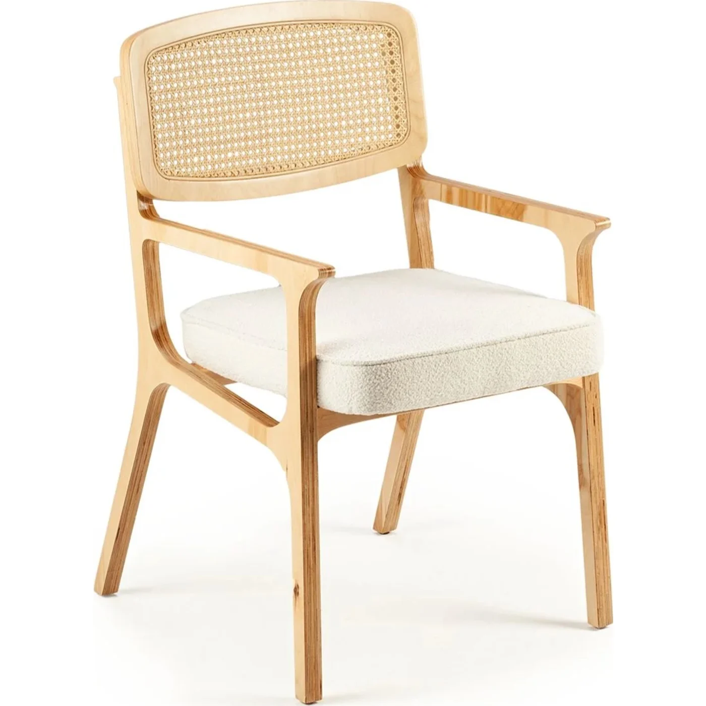 The Karl 1 Chair features a plush bouclê snow seat atop a sturdy beech 056-0 structure, combining comfort with timeless design.