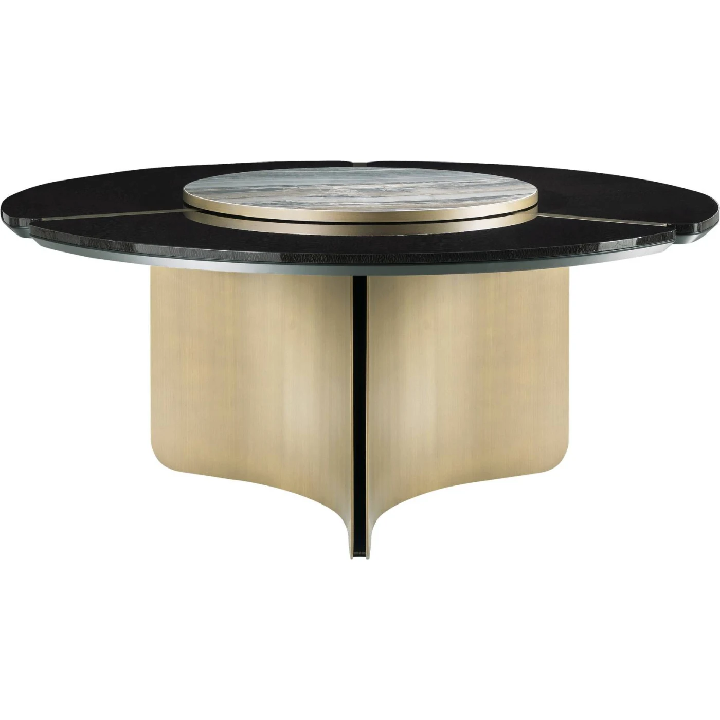 - • Lazy Susan in porcelain gres from the collection, framed by a circular structure in sheet iron in the brushed finishings from the collection.