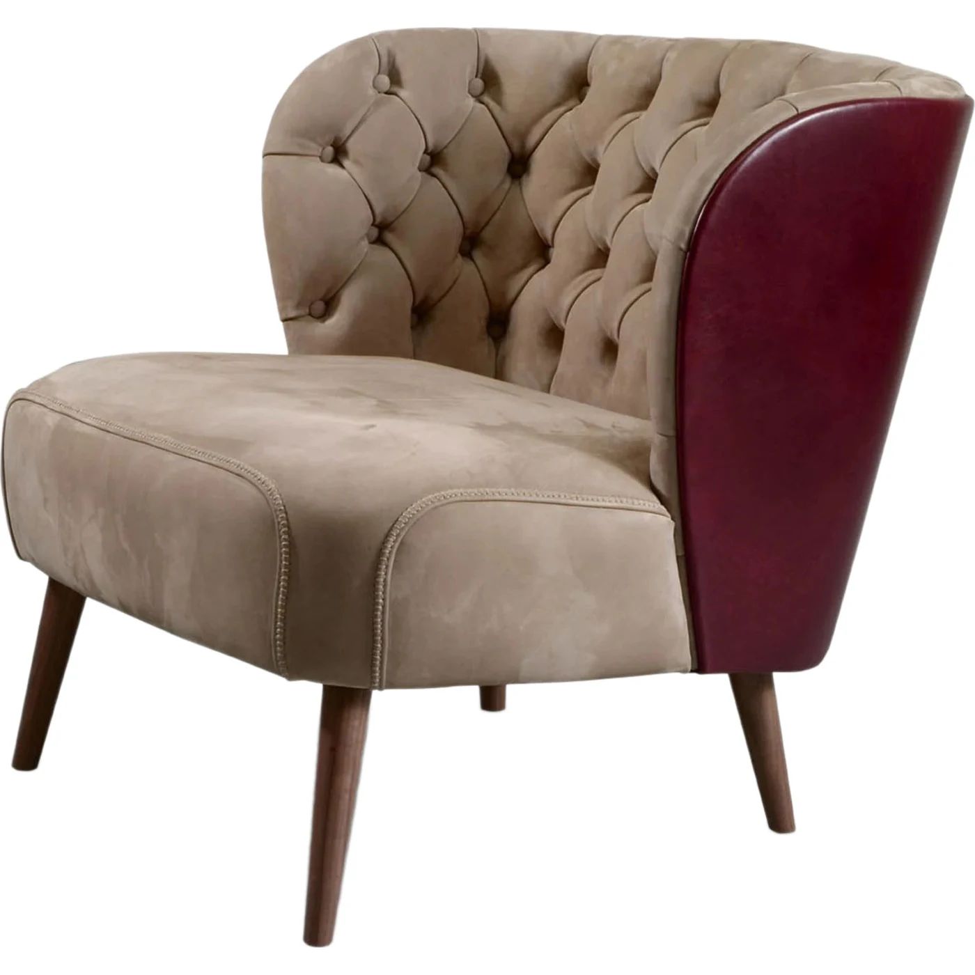 The Lady Matilda Modern Italian Designer Armchair is a masterpiece of luxury, handmade with smooth brown leather upholstery. This elegant furniture collection features expertly crafted wood pieces, available in fine Italian leather or exotic materials like goat skin and shagreen. An extensive selection of premium Italian leathers is available for customization (samples available upon request). The Lady Matilda collection also includes a sophisticated loveseat sofa version, offering versatile elegance for any space. Proudly made in Italy, this collection embodies the essence of modern luxury.