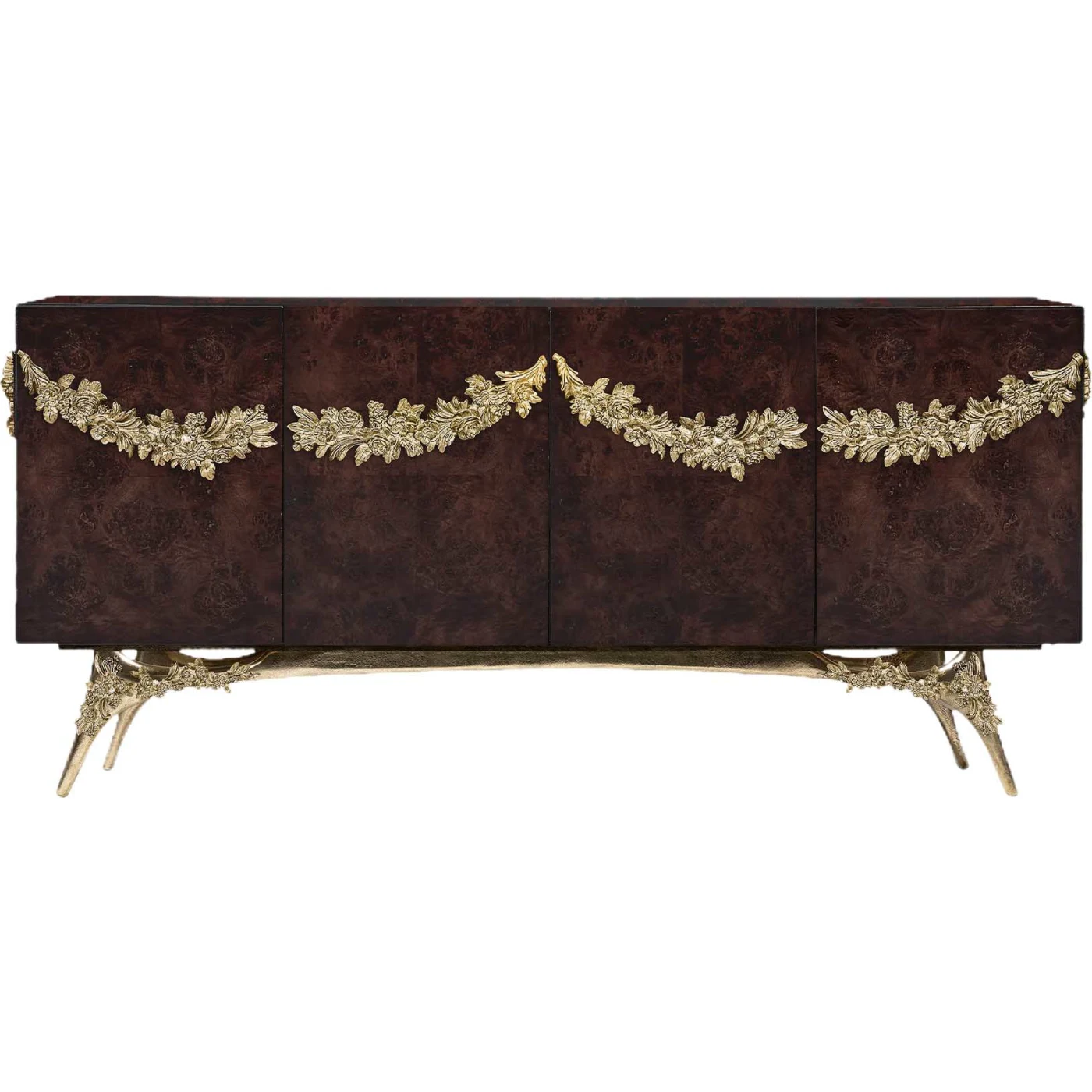 - • It has 4 doors, ornamented with patine cast brass floral garland