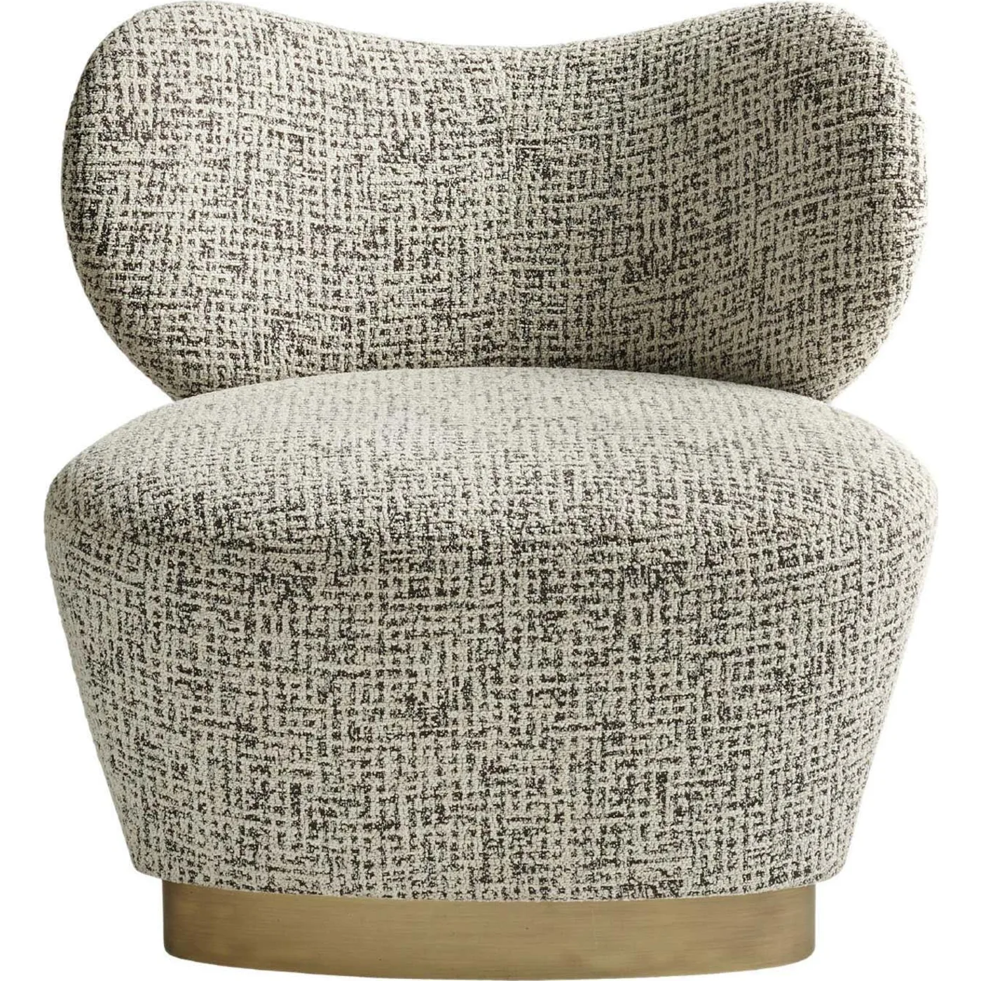 The Marvila armchair blends retro charm with soft, rounded shapes, offering refined elegance and compact proportions. Its sophisticated appeal is further enhanced by a bronzed finish on the base, adding a decorative touch to the design. The armchair features a shaped solid beechwood and multilayer wood structure, with padding in expansive polyurethane foam and dacron. Upholstered in Foggy Black Chenille fabric (cat. A 23.06), it sits on a swivel base made of solid beechwood with a brushed bronze lacquered finish.