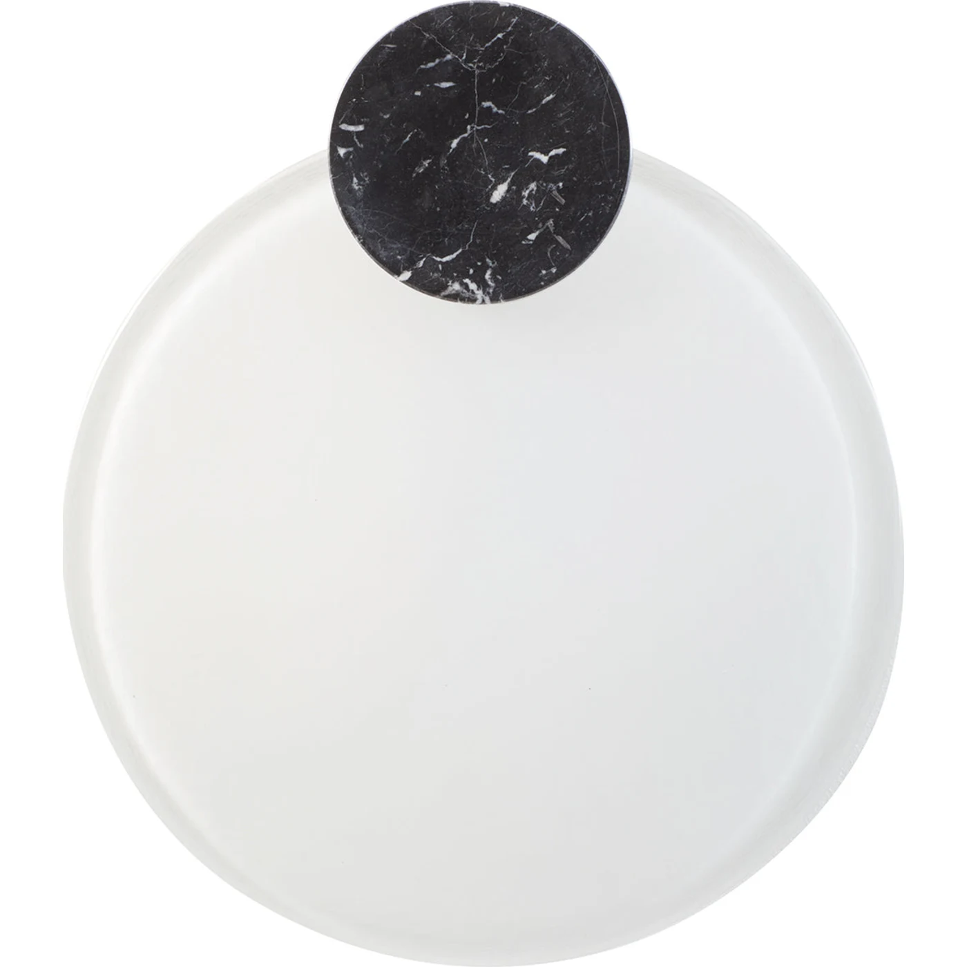 The sensuality of Mata Hari is honored by this understated yet sophisticated wall lamp, which is made up of a disk of white molten glass poured onto an opalescent plate and adorned with a valuable black marble circle. The light replicates the sensual effect of the Dutch exotic dancer and spy wearing just her jewels during her performances. For bulb specifications and variations, please get in touch with the concierge.