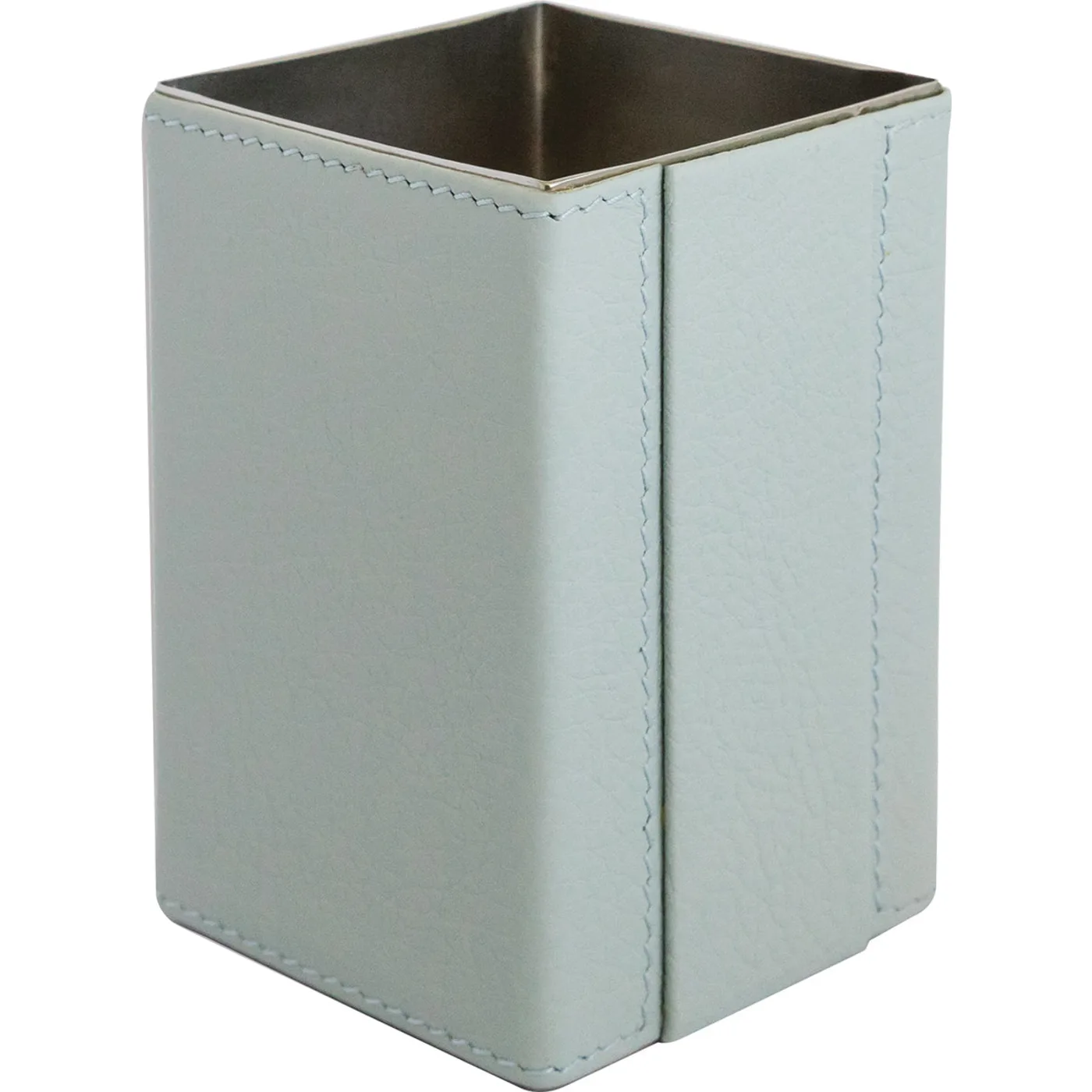 From the Miramare series of bathroom accessories, this toothbrush holder brings a refined and captivating touch to contemporary decor. Timelessly elegant with its blend of metal and leather, it is delicately upholstered in soft genuine full-grain leather in a serene light blue hue. Available in 14 different colours to suit your preference, please refer to the Decofetch catalogue for more information.