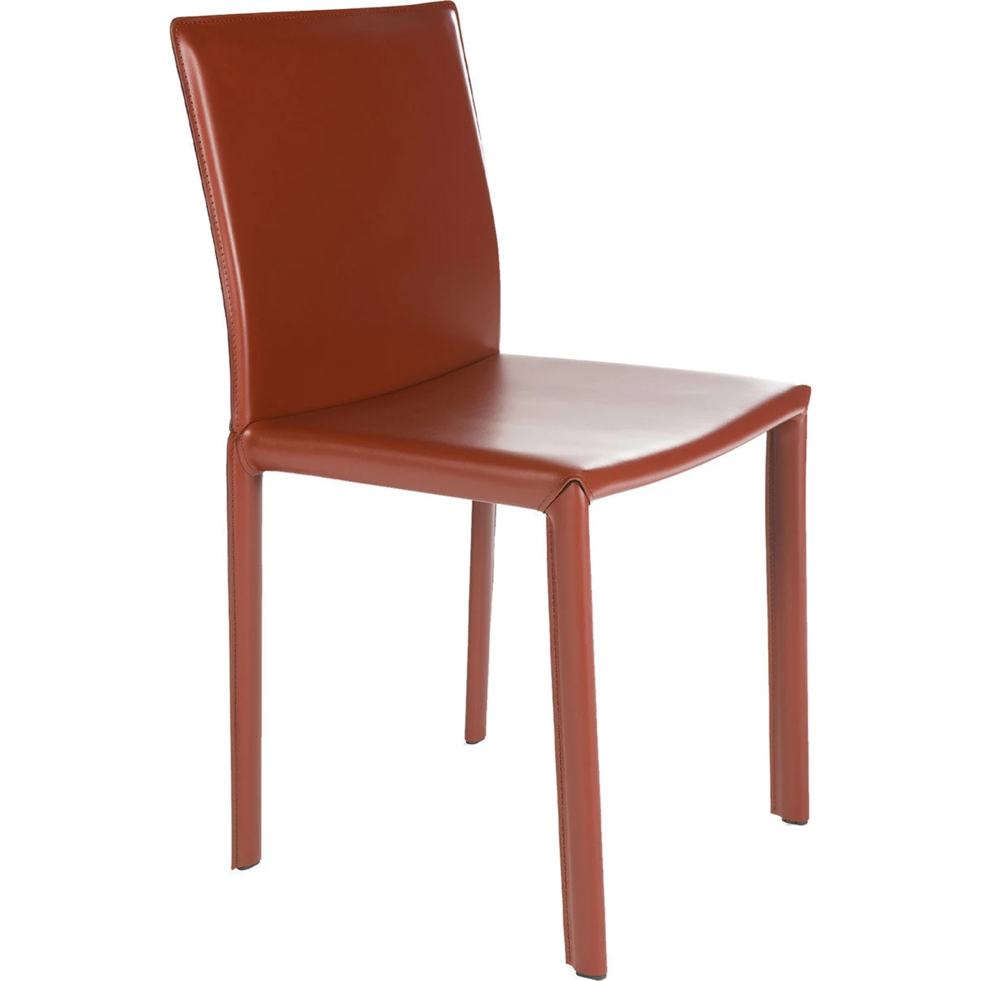 This chair offers an elegant upgrade for any dining room or kitchen featuring a striking linear silhouette that harmonizes function, comfort, and style. Upholstered in soft leather with a sophisticated terracotta hue it boasts a tailored look that enhances both modern and mid-century-inspired decor. Its versatile and durable design also makes it ideal for office environments. Customization is available in a variety of colours and materials including eco-leather, technical fabric and Rebel leatherette. For further details please contact the Concierge.