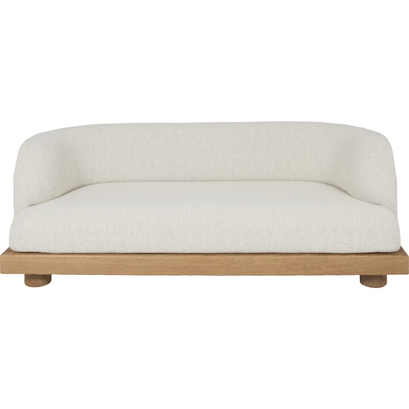 French refinement and wabi-sabi inspiration converse in the NOMAD collection. The cushioned curves of the seating contrast with the brushed wood's rough look; the rounded shapes and the simple line combine to create a tasteful and harmonious balance. The NOMAD sofa has a unique visual and practical purpose thanks to the solid wood plank that appears to float. The overhangs on either side provide space for seats for item placement and display, adding a personal touch to the furnishings.