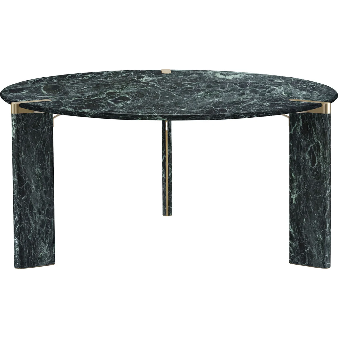 Crafted from prized Verde Alpi marble, this dining table boasts clean geometric volumes that impart a distinctive and luxurious impact. Aluminum inserts provide accents of brightness to the structure, enhancing its overall aesthetic. The table's allure lies in the intricate and unpredictable natural traceries that the marble proudly displays, making each piece unique and captivating.
