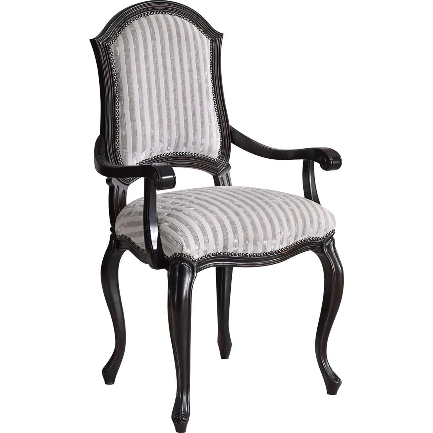 Add a regal feel to your traditional dining space with the Pavia Armchair. Skilled artisans from Italy's Veneto region, known for their furniture expertise, have crafted this chair. Its glossy black wooden frame adds a touch of elegance. Covered in striped fabric, it's comfy and fits well with various dining tables. You can also choose the armless option.