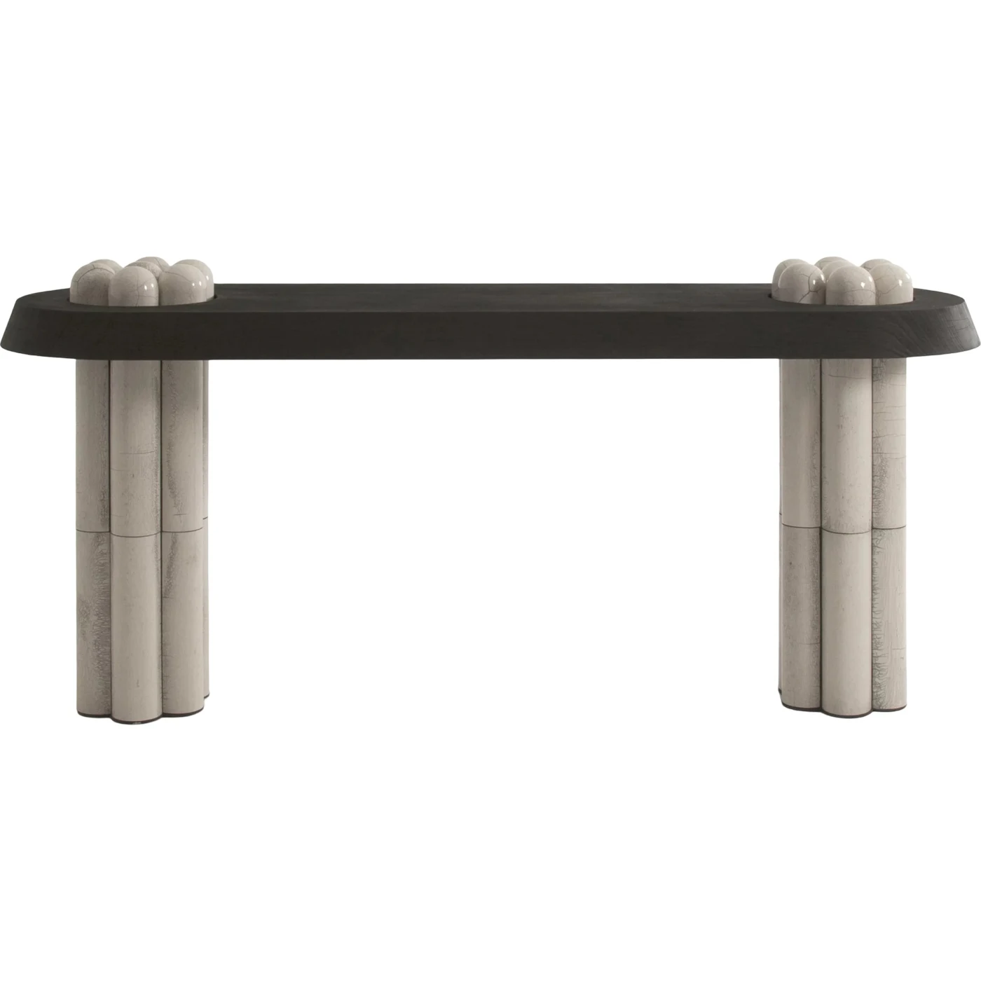 The items in the Raku-Yaki collection are bold and adventurous. Raku is an old Japanese ceramic technique used to create the tiles that embellish the furniture and lighting fittings. Thermal shock causes the glazing to shatter, exposing faint black lines that form haphazard patterns that resemble a skyline. Each piece is one-of-a-kind thanks to this process, and the strength and enchantment of handmade craftsmanship are displayed in wall-mounted pieces, lighting, buffets, tables, and bar cabinets. Both the material's atmosphere and its design convey a subtle elegance.