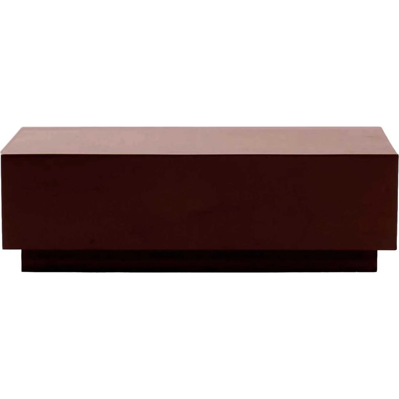 This unique table offers a daring and artistic addition to modern decor. Inspired by modernist art, it boasts a solid silhouette created through two concentric rectangles, with the larger one as the table surface and the smaller as the supportive base. The glossy red lacquered finish adds harmony and elegance. Crafted from medium-density fiberboard, it's lightweight and portable.