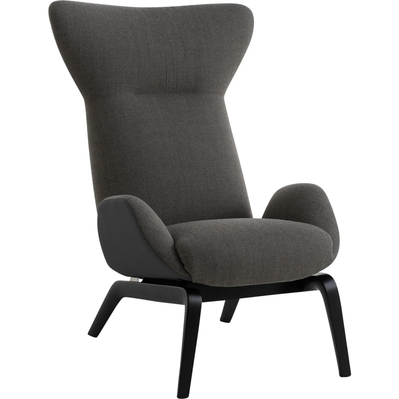 Drawing inspiration from Scandinavian interior design, this exquisite armchair showcases gentle curves and an inviting comfort. Created by Studio Balutto with meticulous attention to detail, it includes a black ash wood base with robust slanted feet. The spacious seat (47 cm height) and backrest are padded with polyurethane and cold foam, enveloped in gray fabric upholstery. Additionally offered in eco-leather and leather, this armchair can be customized with dual colors or materials for the front and back surfaces; please contact our Concierge for personalized options and pricing.