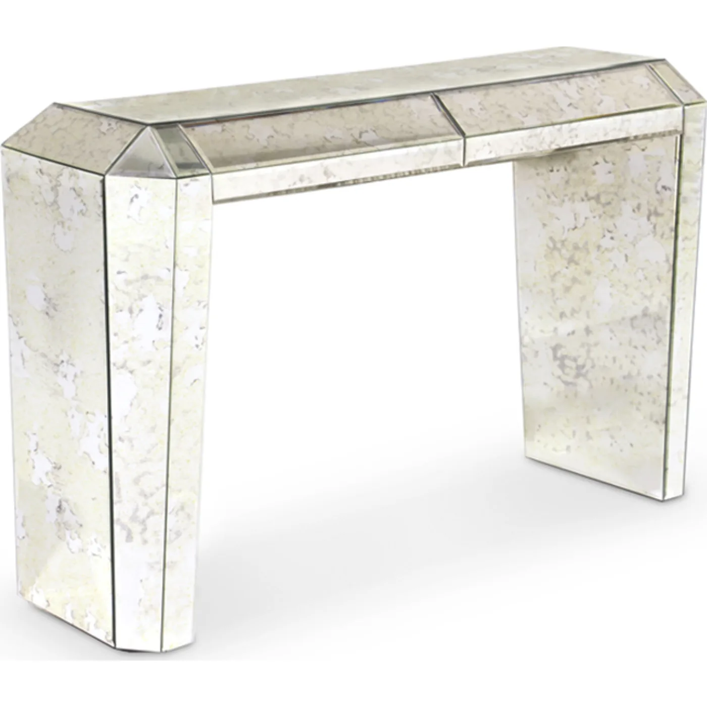 Designed with the look and feel of an old-world style, the Tamara console is perfect for any home or office. The table is constructed of brown translucent with a high gloss finish that is sure to make a lasting impression. Its frame has strong geometric lines, which are coupled with luxurious and alluring mirror panels and two drawers.