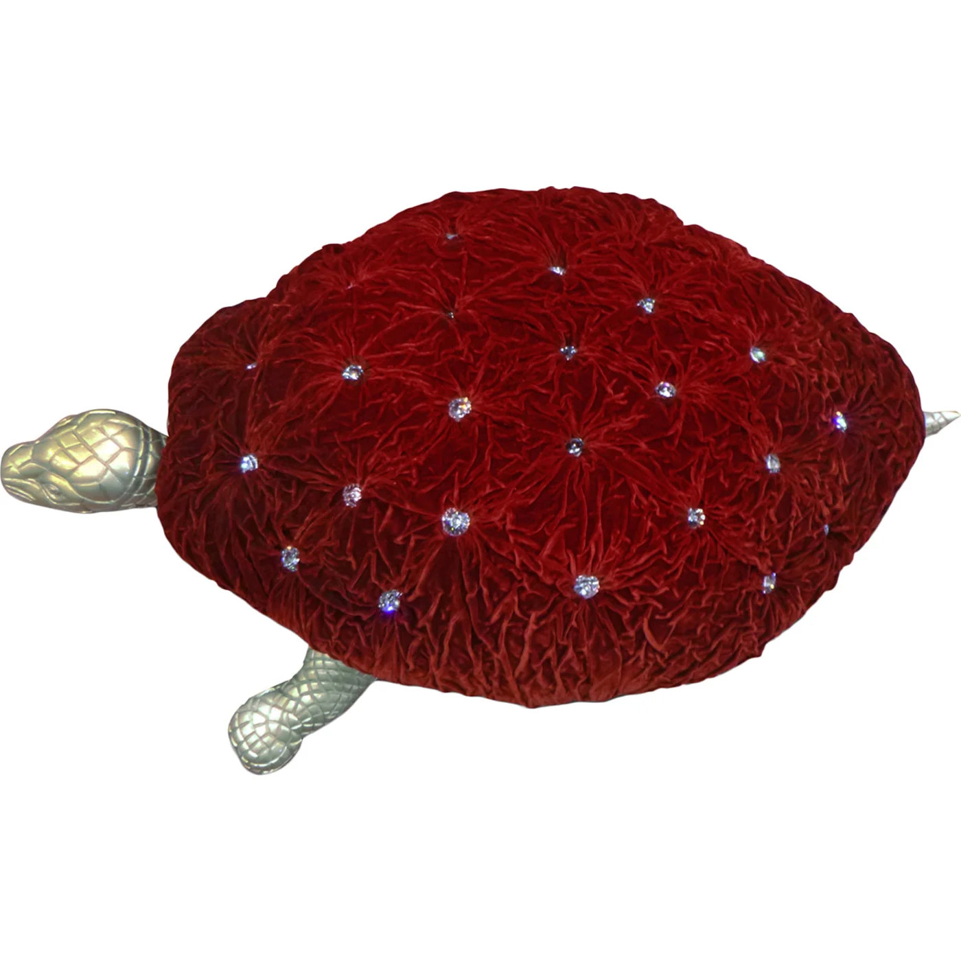 This stylish Turtle pouf is functional, stylish, and whimsical. The Turtle pouf is defined by its Glamor Gold finish and features a turtle frame, including a head, legs, and tail, entirely made of wood. The Turtle pouf will complement both traditional and contemporary decor. The turtle "shell" is a tufted cushion with Swarovski crystal buttons that replicates the rough pattern of a turtle shell. It is covered in a bright red, frotté velvet fabric. This pouf will be a multipurpose element that will liven up any living room, bedroom, or private study design. It is the perfect footrest, seating area, or sophisticated serving location.