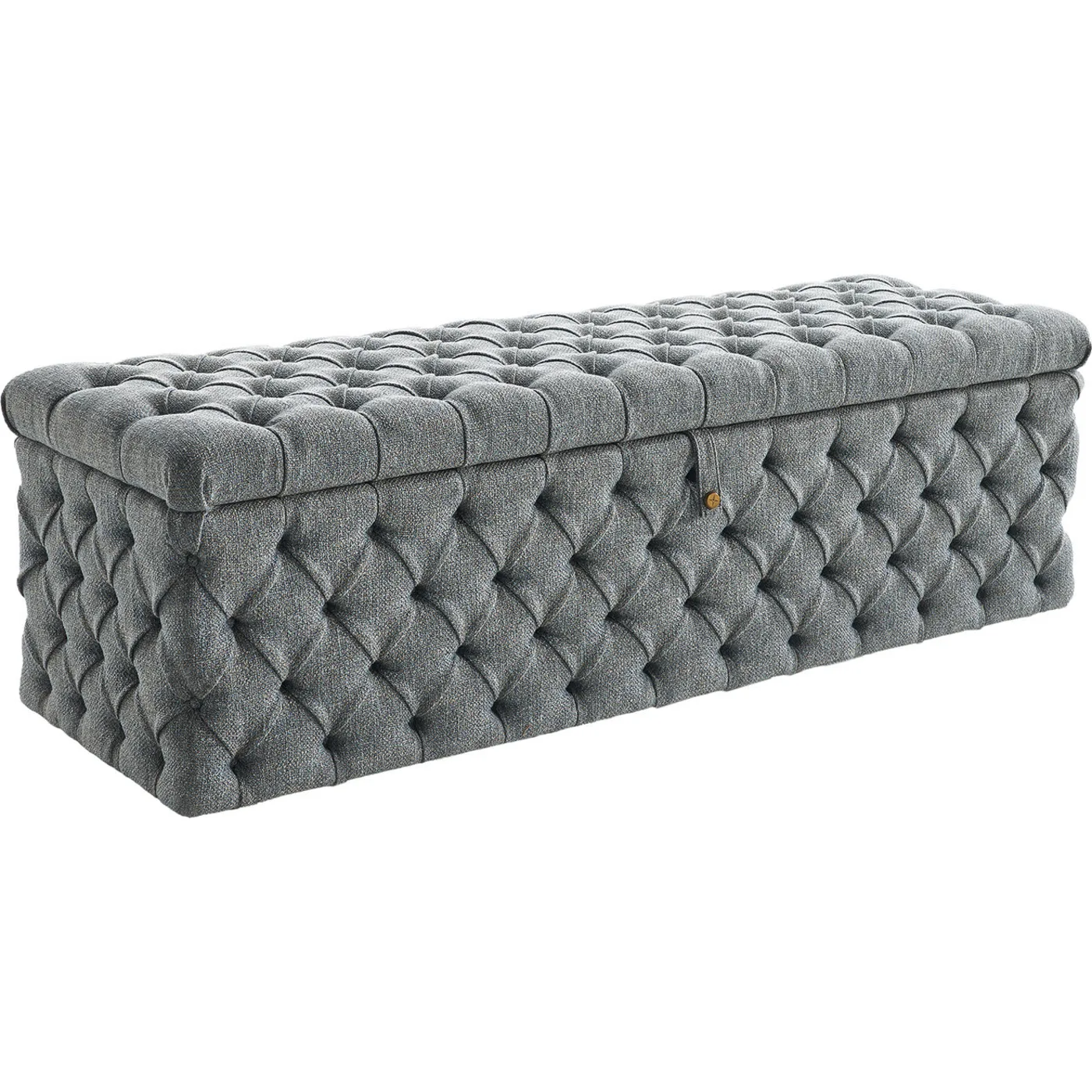 A multifunctional design exuding timeless elegance, this bench and storage unit is a testament to craftsmanship and style. As part of the Studio Interior Collection, it is meticulously handmade from solid wood, ensuring durability and quality. Upholstered with an exquisite hand-tufted gray fabric, it exudes sophistication. Enriched with a brass button and logo, it adds a touch of refinement to its design. Explore other versions available on the Decofetch catalog and consult the Concierge for more details.