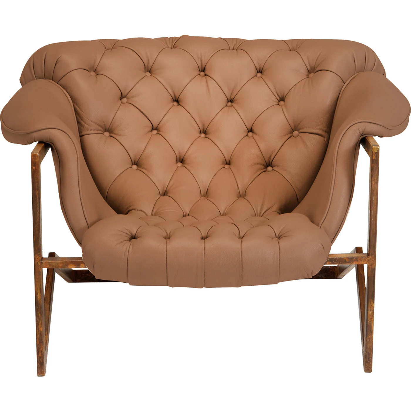 This upscale armchair, which combines traditional and modern design elements, is as bold as it is tasteful. On top of an incredibly sturdy iron frame with sleek, streamlined volumes and a stylish Corten finish, rests a well padded nest covered in tufted leather. Carlo Rampazzi's design is a perfect complement to modern environments.