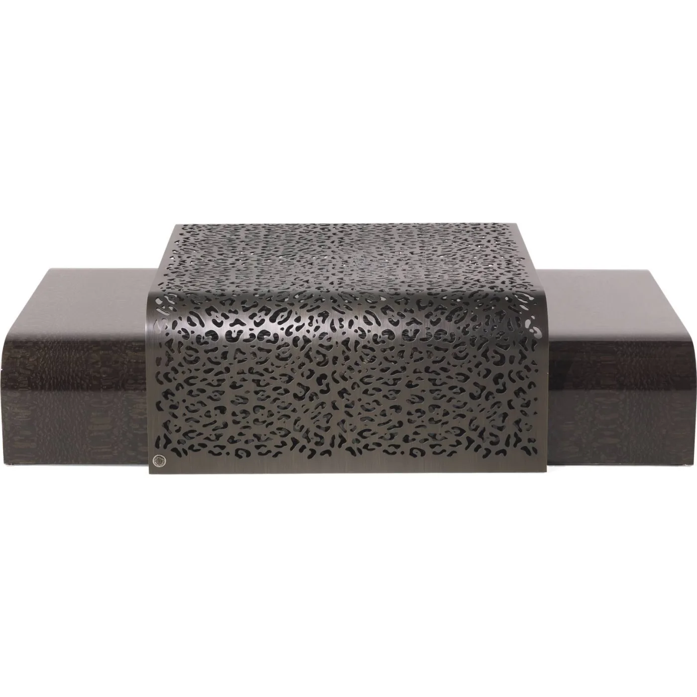 Introducing Watamu, a pair of tables with a name that brings to mind the famous Kenyan place. It combines essential, minimal design with exuberant, sophisticated décor typical of Roberto Cavalli Home Interiors. One has an animal pattern made by laser-cut metal, while the other is made of wood which creates harmony between different materials and styles.